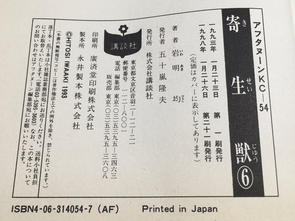 AAA4114 Parasyte Vol.6 Japanese Manga